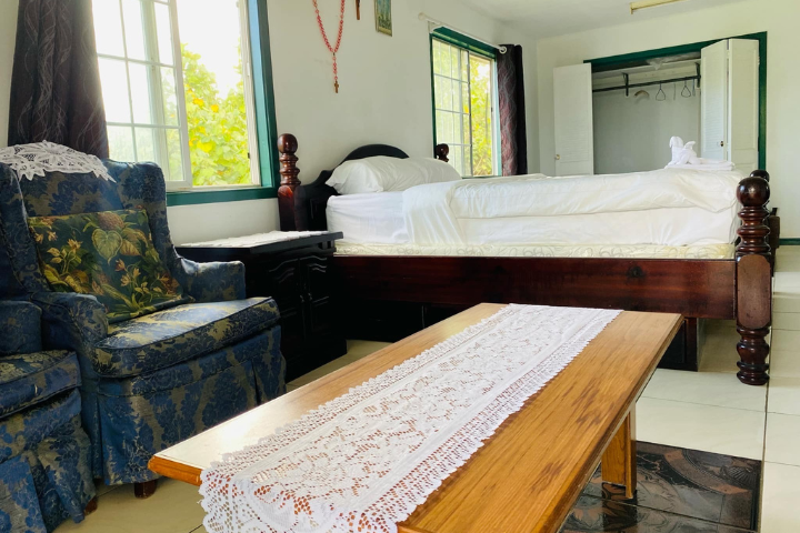 This cozy upstairs room comes with a double bed. The bathroom is shared with one other room and is conveniently located upstairs. While there's no air conditioning, a fan is provided to ensure your comfort. Ideal for a peaceful and private stay!